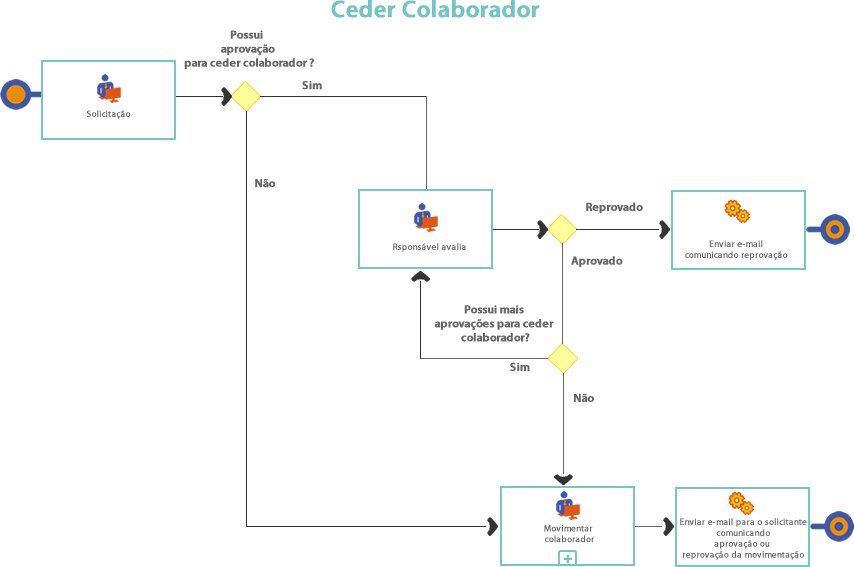 O processo Ceder colaborador é utilizado para autorizar o início de um processo de movimentação de um colaborador para outra gestão que não possui visibilidade sobre o colaborador através do processo Movimentar colaborador.