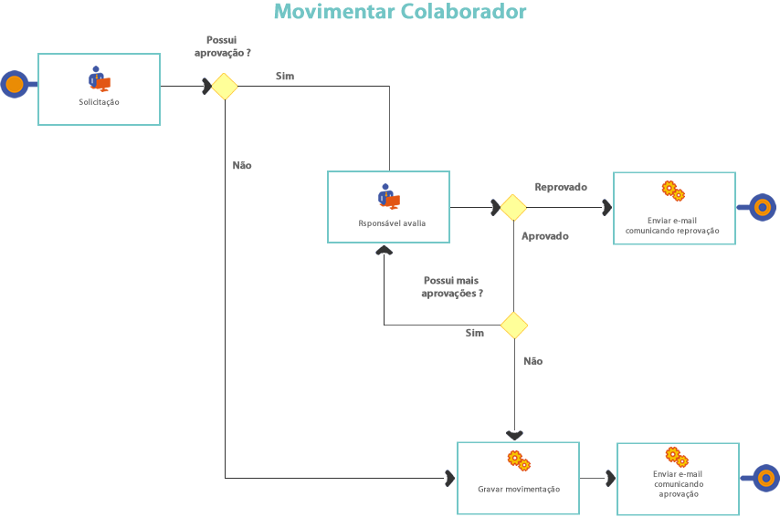 O processo de Movimentar colaborador poderá ser iniciado automaticamente se optado por configurar os processos: Buscar e Ceder colaborador.