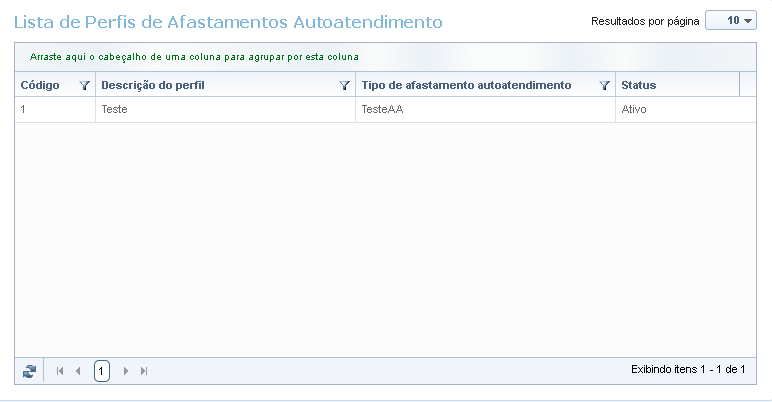 Ao abrir essa funcionalidade, é apresentada uma relação dos Perfis de afastamento já cadastrados: