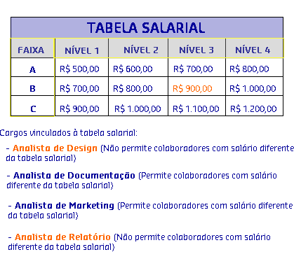 Através deste modelo é possível verificar se o reajuste do colaborador ultrapassa o limite.