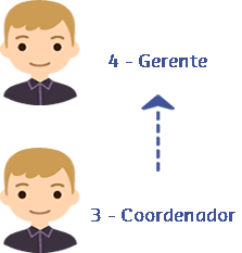 Neste cenário apenas colaboradores de nível 3.Gerente, 4.Coordenador e 5.Colaboradores poderão prosseguir com as solicitações.
