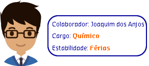 O colaborador Joaquim dos Anjos trabalhada em um laboratório como Químico, seu cargo é considerado como cargo de risco, pois está sempre exposto a reagentes que causam danos físicos ou prejudica a saúde. O sindicato de sua categoria definiu que para o cargo de Químico, o colaborador terá uma estabilidade de 2 meses, à partir do retorno das férias devido aos riscos das atividades executadas.