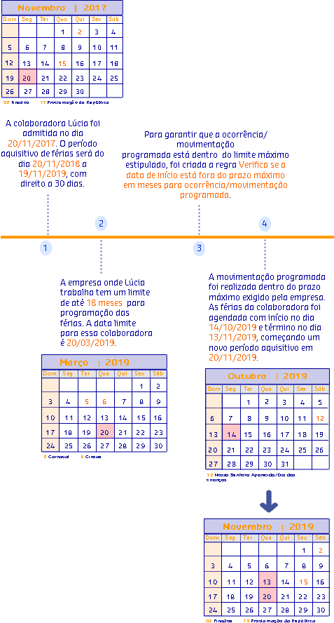 Através desse modelo é possível que a regra retorne verdadeiro quando for identificado que as parcelas de férias não estão de acordo com o § 1º do art. 134 da CLT.
