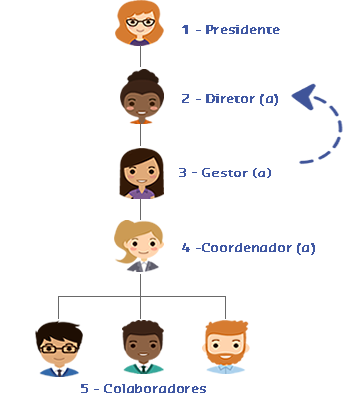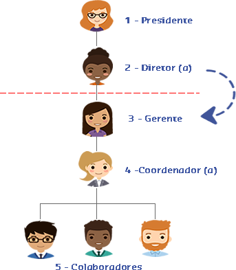 O superior de Stella deseja muda-lá de estabelecimento, mas a mantendo na mesma área de atuação. Então, solicitou sua movimentação para o estabelecimento desejado. Como a solicitação foi para um perfil que utiliza a regra Visualizar se colaborador é gestor, verificou que Stella era gestora e enviou a solicitação de movimentação para seu superior direto, a diretora da empresa.