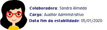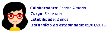 A colaboradora Sandra trabalha como secretária há 6 anos, e possui uma estabilidade de 2 anos contando à partir do dia 05/01/2018.