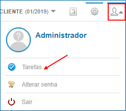 Para conferir o andamento da exportação, assim como sua conclusão, basta acessar o Gerenciador de Tarefas no canto superior direito: