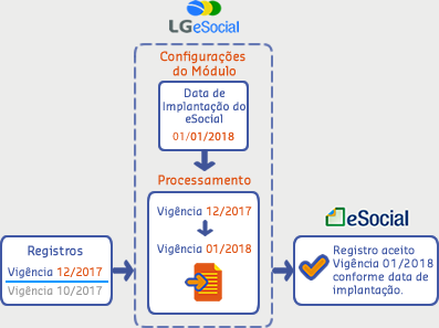 Ao processar, caso existam registros onde suas Vigências são anteriores à Data de Implantação do eSocial, será considerada a Vigência mais atual, ajustando-a à data de implantação.