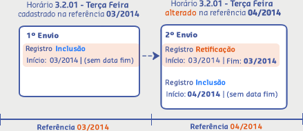 O operador realizou a alteração do horário contratual 3.2.01 - Terça Feira na referência 04/2014 e já tinha enviado o arquivo do leiaute S-1050 correspondente a inclusão deste horário para o eSocial (Governo) na referência (03/2014).